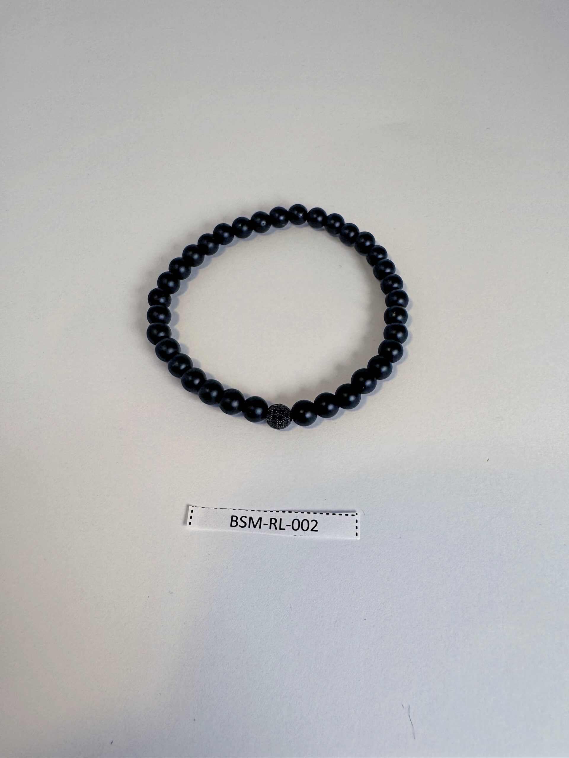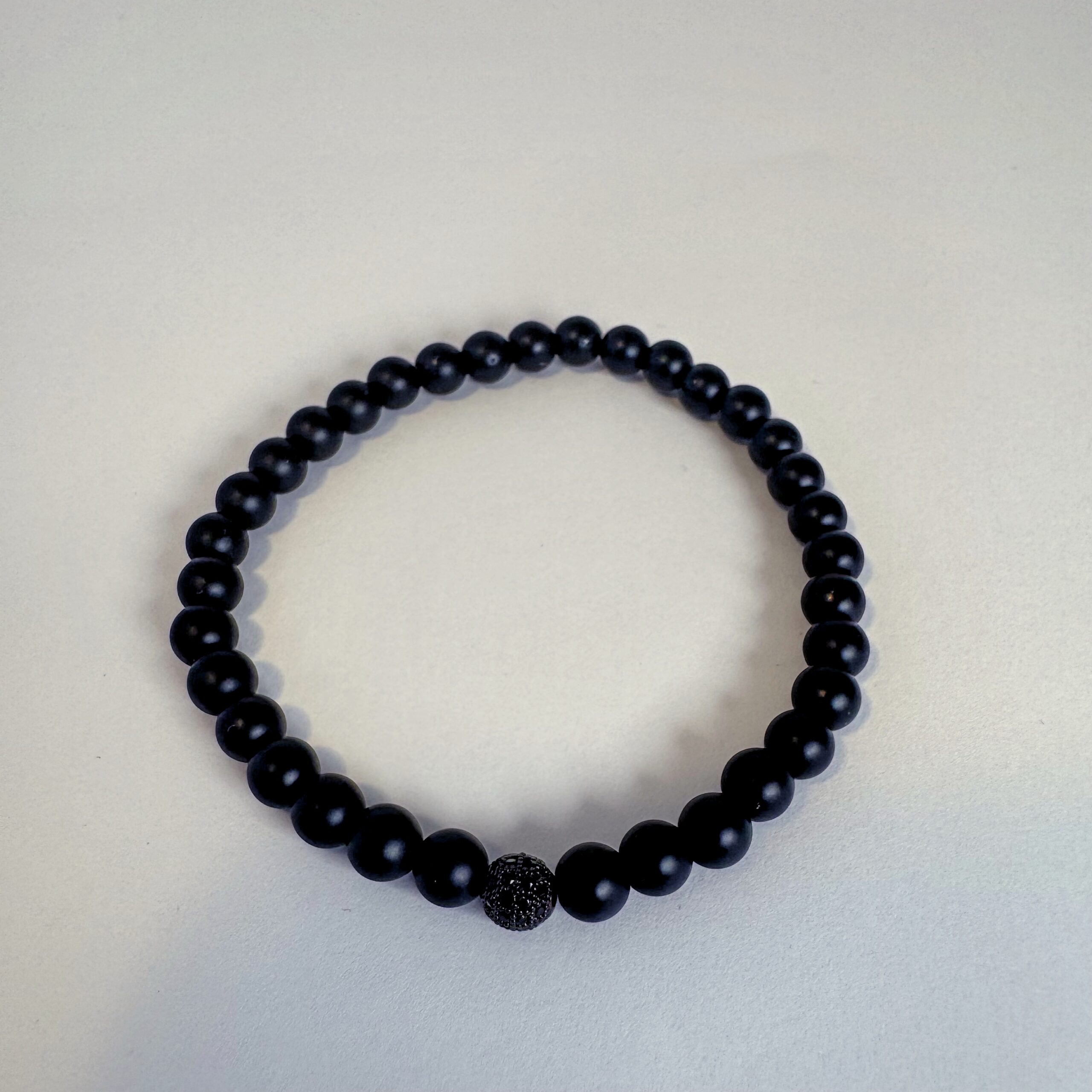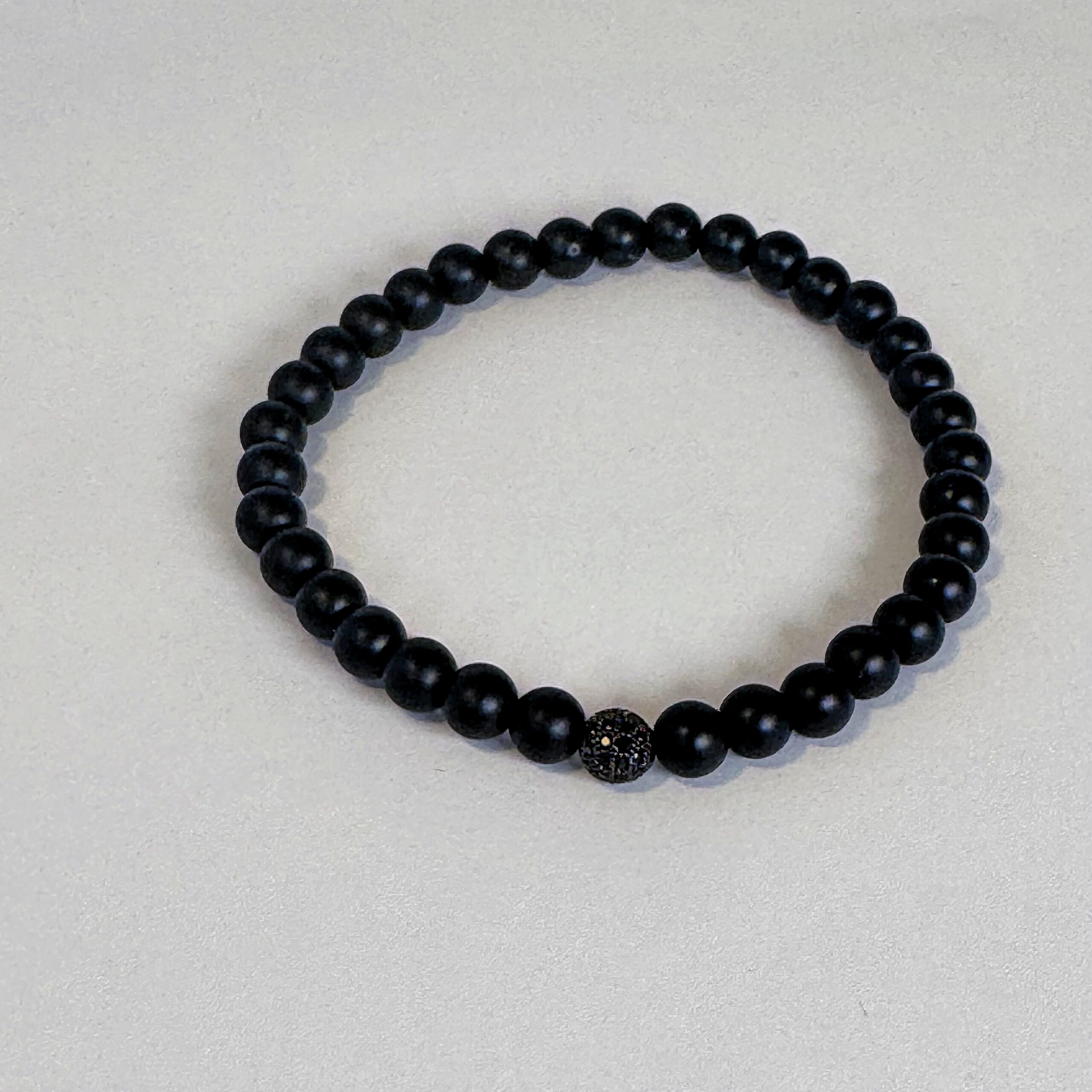 Оникс?; 1 Бусина 6 мм черная круглая с цирконами; резинка; размер камня 6 мм