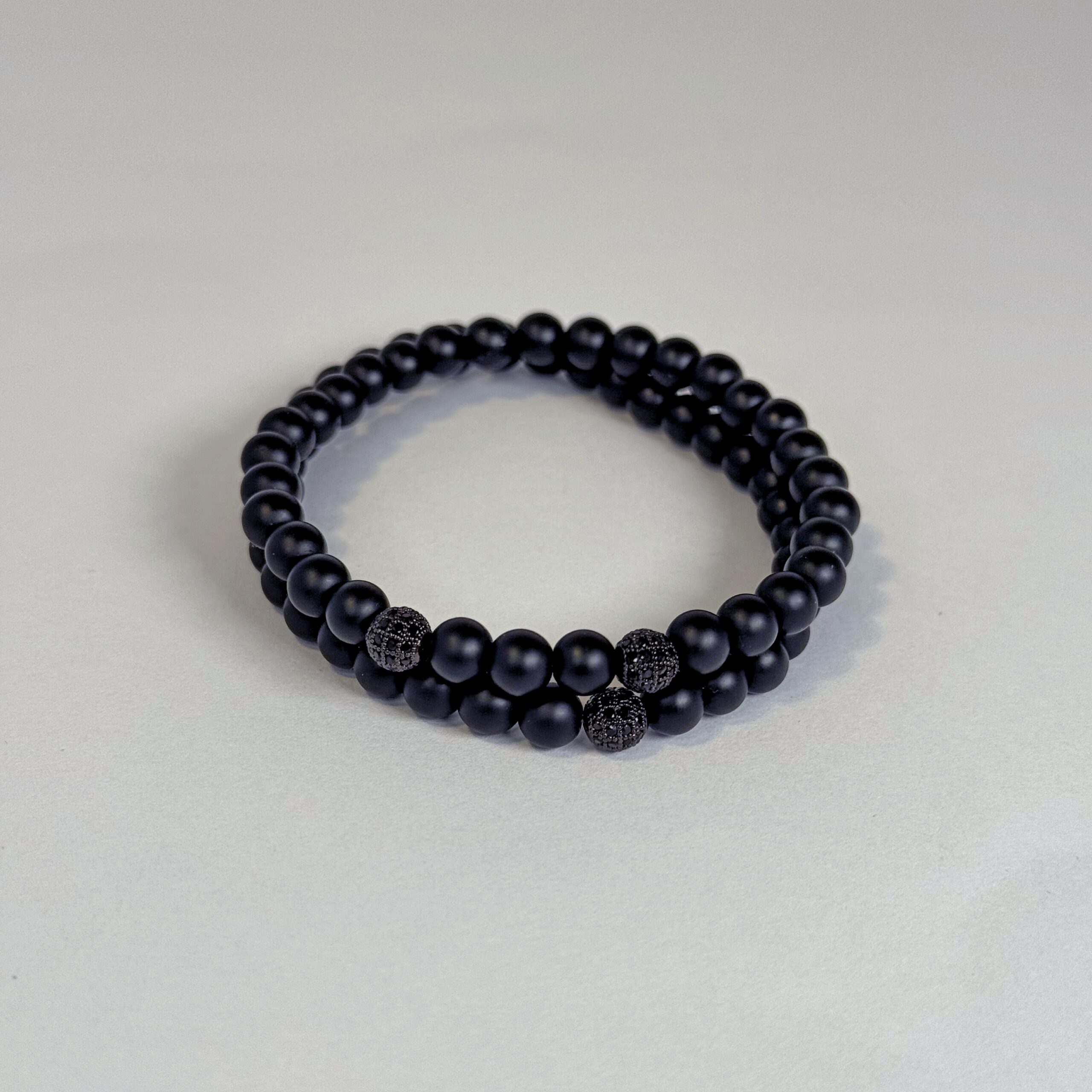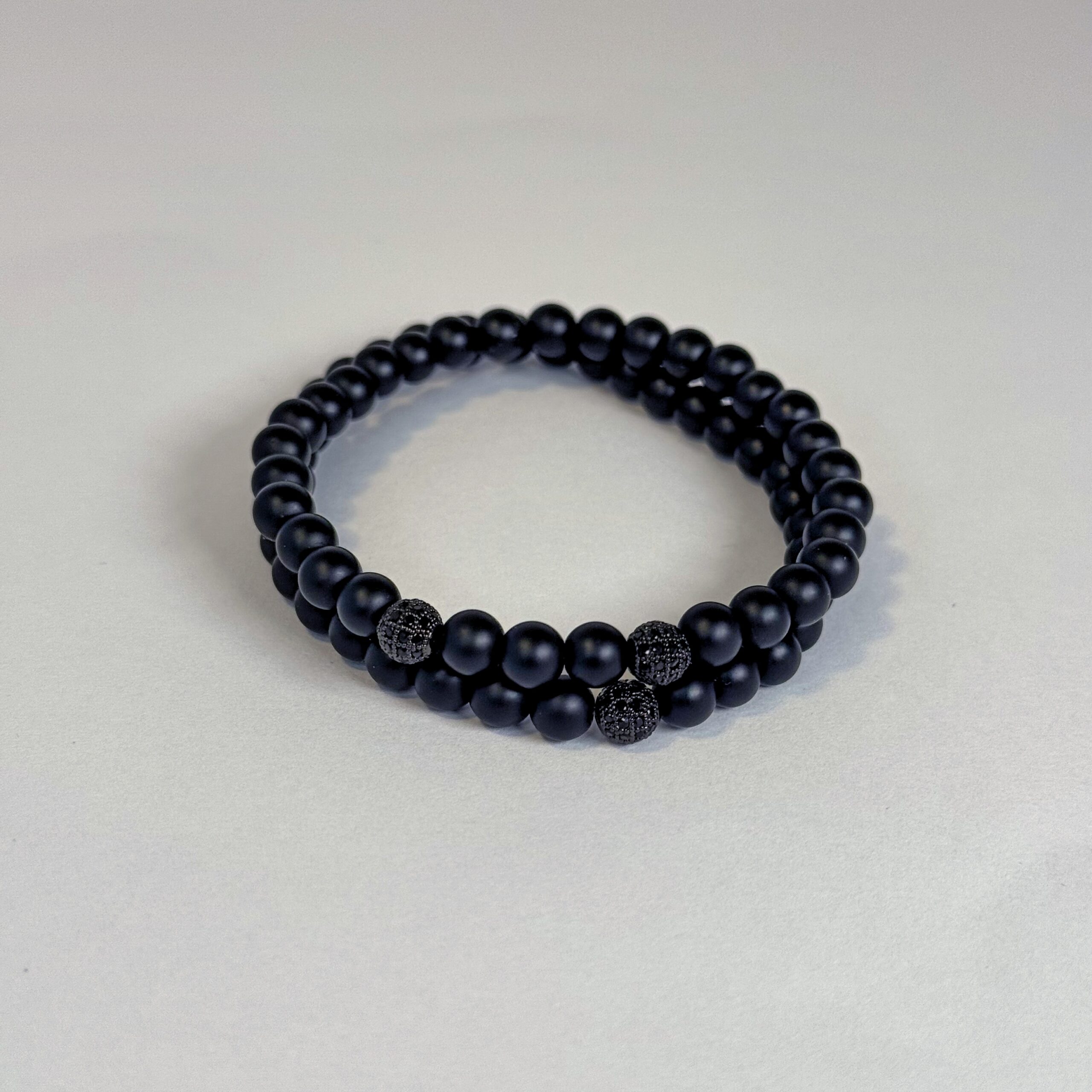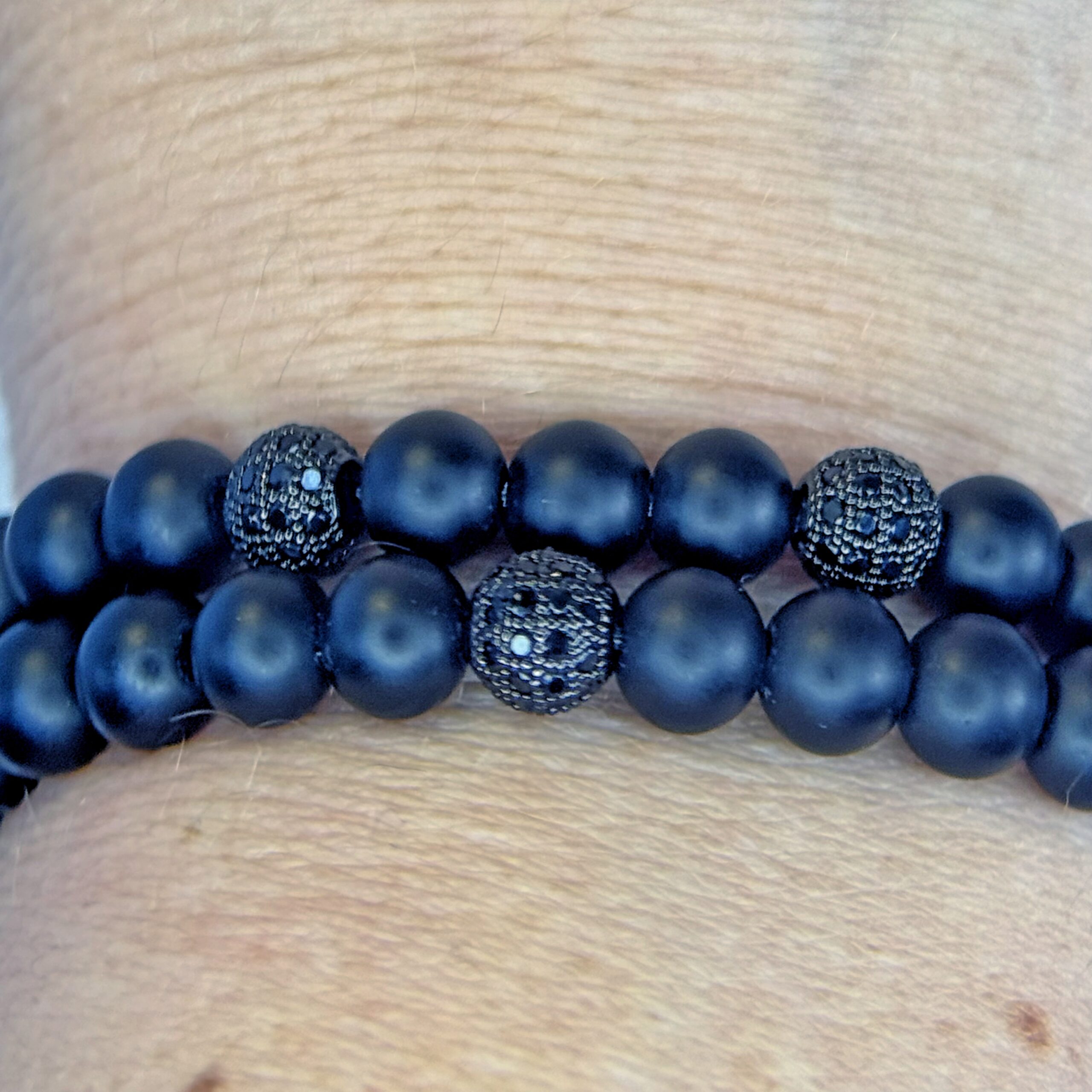 Оникс?; 1 Бусина 6 мм черная круглая с цирконами; резинка; размер камня 6 мм