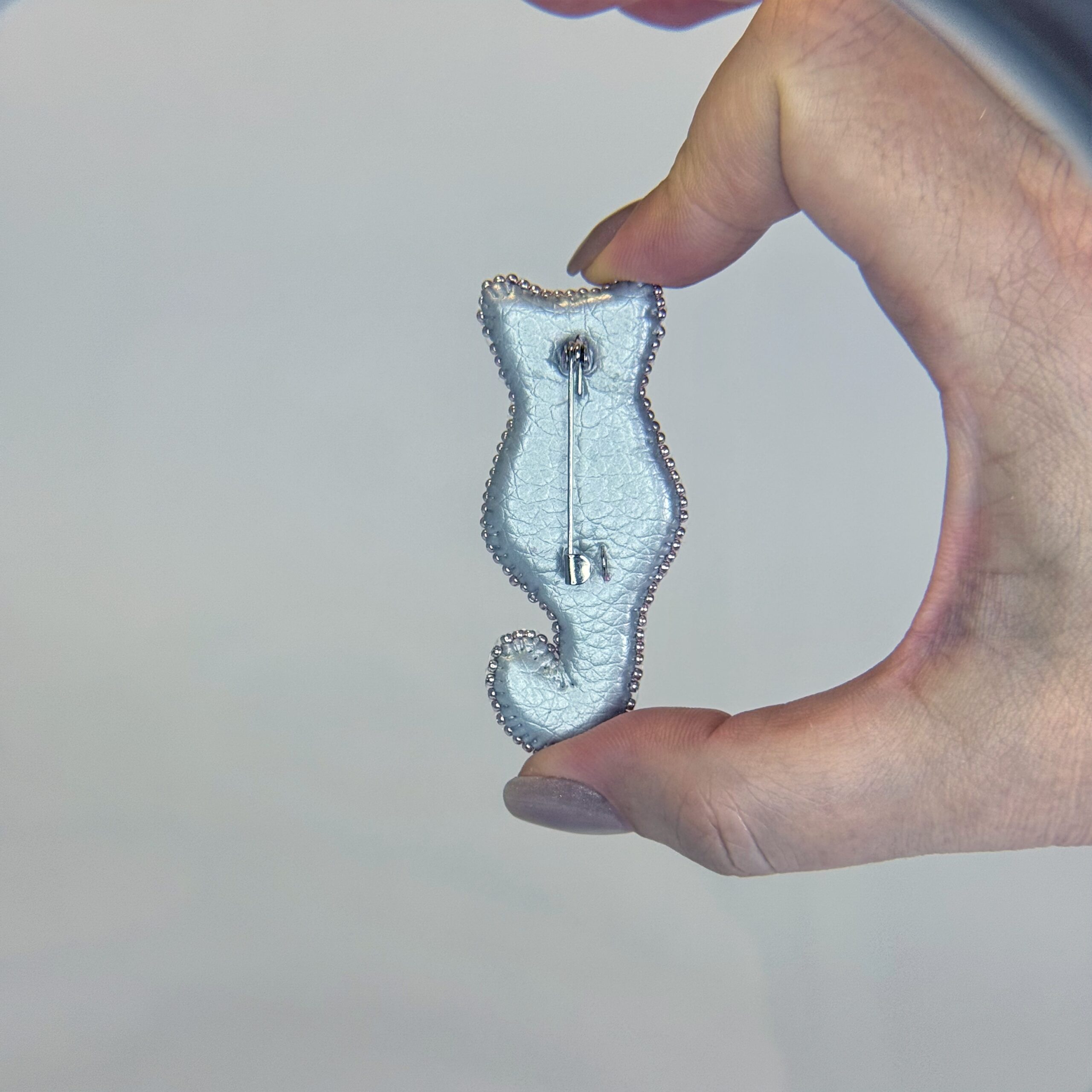 Add a touch of feline grace to your wardrobe with this stunning handmade Pink Cat Silhouette brooch. Meticulously hand-embroidered, it features a beautiful gradien t transition from deep magenta and rich purple to soft, pale pink tones. Whether you’re a cat lover or simply adore unique, sparkling accessories, this brooch is designed to make a statement.