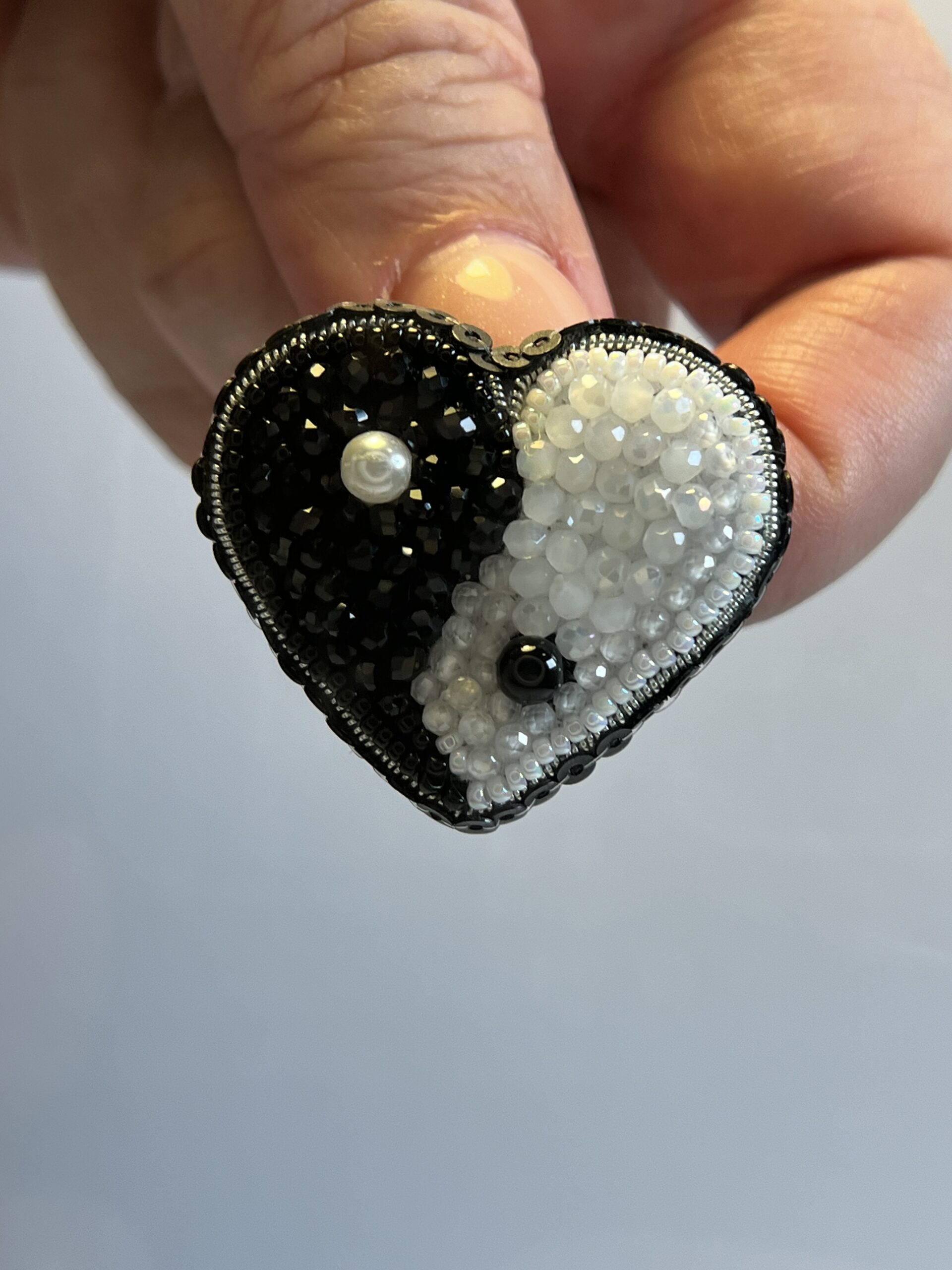 Harmony and love in miniature. This compact Yin Yang Heart brooch captures the ancient symbol of harmony in a beautifully tactile form.